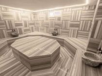 На цокольному поверсі є турецька лазня, сауна та тренажерний зал.