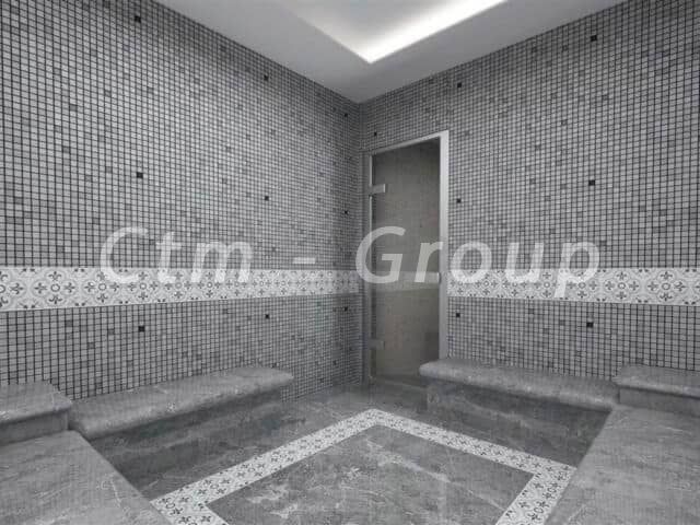 Комплектация апартаментов: тепло и водоизолированные фасадные и кровельные покрытия, облицовка зданий, внешние столярные изделия, теплое стекло антрацитового цвета серии люкс, декоративная входная дверь из кованого железа, запасной бак для воды и система повышения давления, внешняя краска JUTON, визуальная и звуковой звонок, почтовый ящик, современный лифт, сертифицированный TSE, мраморные полы 1-го класса во внутренних холлах здания, изоляция между соседними квартирами, центральная спутниковая система