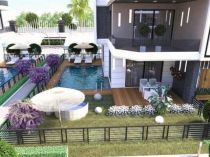 - 7 садовых дуплексов 4+1, площадью 210 кв.м. У каждого садового дуплекса есть личный бассейн и садовый участок